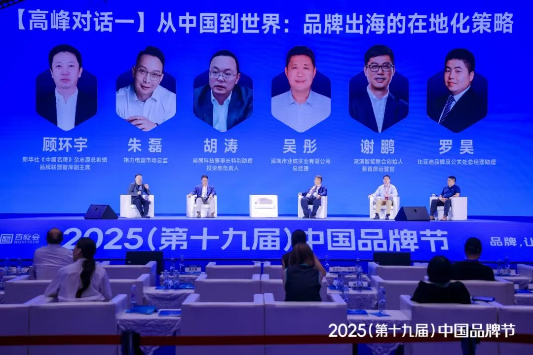 8 月 8 日,被誉为 “中国品牌界奥运会” 的 2025(第十九届)中国品牌节在深圳隆重开幕。本届品牌节以 “AI 与出海” 为主题,吸引政、商、产、学、媒等各界万余人齐聚,共论品牌智能化与国际化发展新路径。作为中国 AI 营销技术领域的代表,BB视讯智能联合创始人兼 COO 谢鹏先生受品牌节组委会之邀,出席峰会主论坛 “品牌出海的在地化策略” 高峰对话。该对话由新华社《中国名牌》杂志原总编辑、品牌联盟智库副主席顾环宇主持,格力电器市场总监朱磊,裕同科技董事长特别助理、投资部负责人胡涛,深圳市业成实业有限公司总经理吴彤,比亚迪品牌及公关处总经理助理罗昊等五位嘉宾共同参与,围绕 AI 驱动的新质生产力变革、跨文化品牌叙事创新及可持续增长的全球布局战略展开深入探讨。